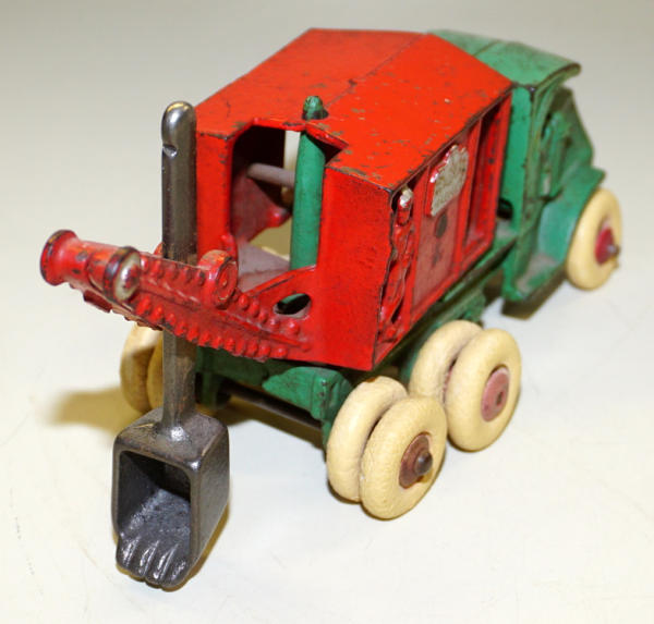 about 10" long, good original paint, 80% condition, wheels are original and have been cleaned