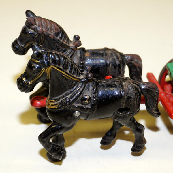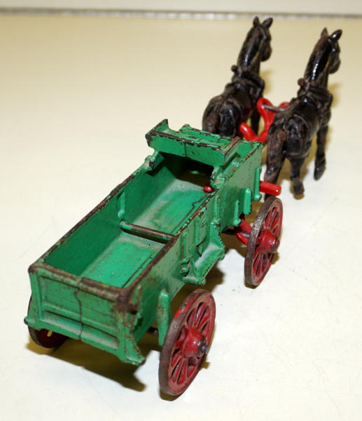 no driver, paint on the team and wagon is about 70%, looks like the hitch has been repaired & repainted