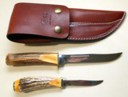both knives are alike; wood handles & brass hand guards; blades are 9.5" long; sell 2x the money