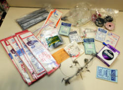 #500 - Large Lot of Fly Fishing Items: Flies, Reel, String, Vise & more