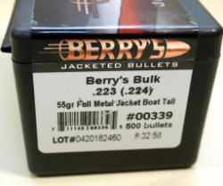 #1038 - BULLETS: Berry's .223 (.224) 55gr. FMJ-BT