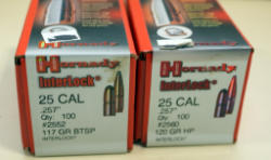#1040 - BULLETS: Hornady .25cal 117gr. BTSP & 120gr. HP