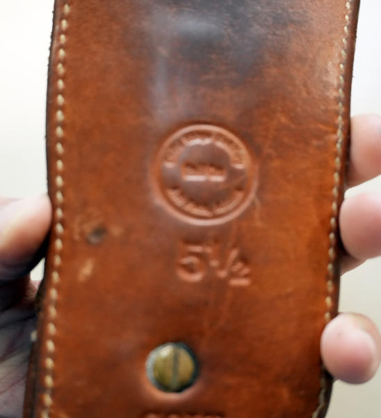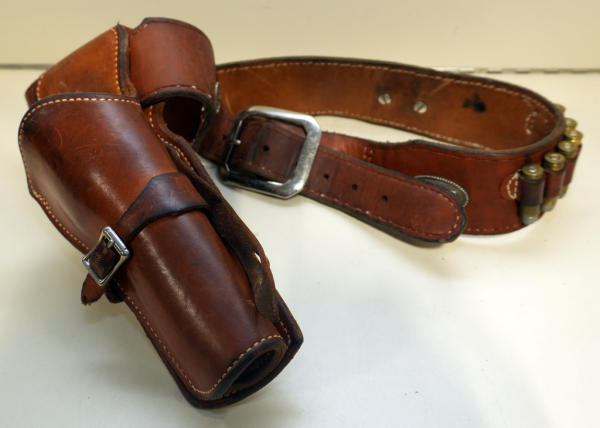 has 5-rounds of 45 Colt in the belt; belt is unmarked; holster is 5-1/2; nice used condition