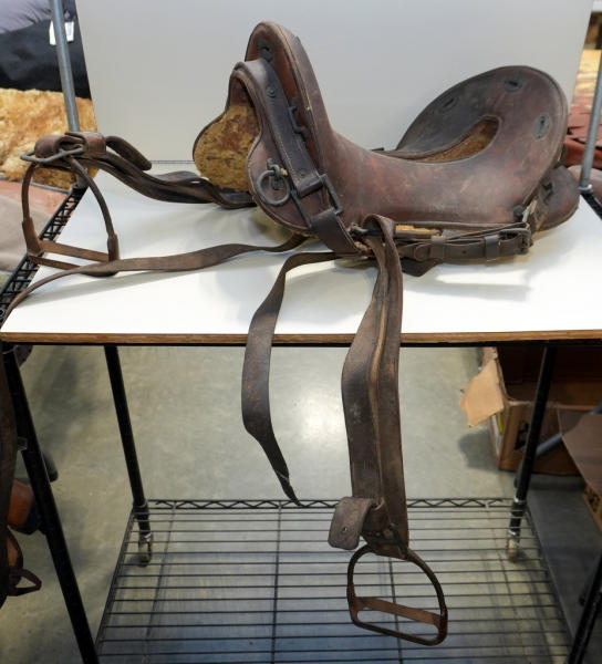 no maker mark or tag that I can find; leather needs to be cleaned;