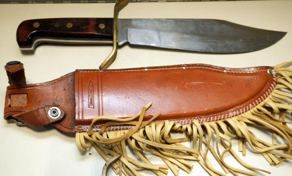 both knives are alike; wood handles & brass hand guards; blades are 9.5" long; sell 2x the money