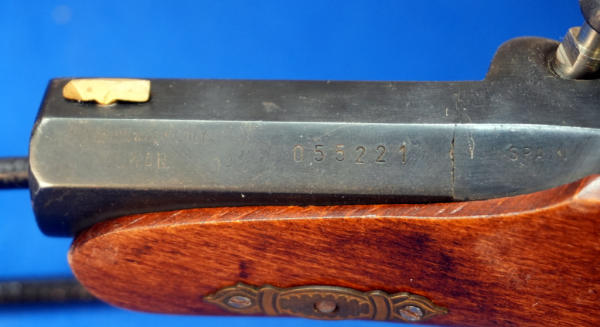 2.5" Oct. BBL; wood frame w/brass accents; mech works; very nice clean condition; SN#055221; NO TRANSFER NEEDED
