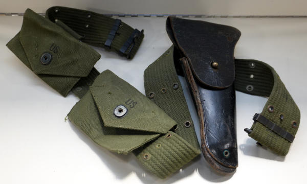 includes two ammo pouches; leather has some wear; not dated