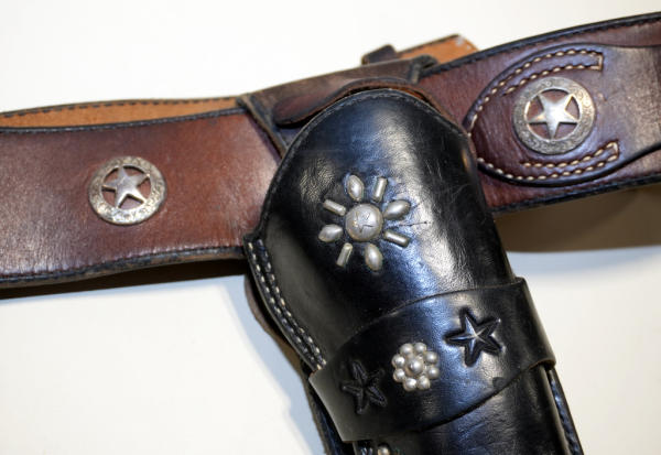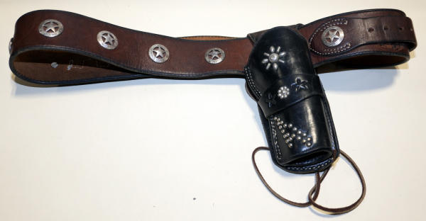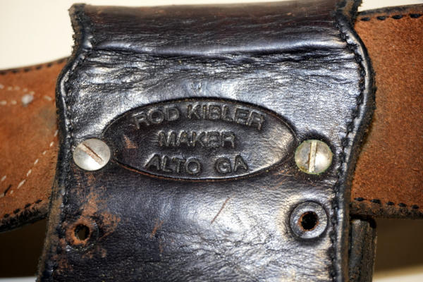 has sheriff badge type emblems on belt; both are marked Rod Kibler but holster is black & belt is brown; no size markings