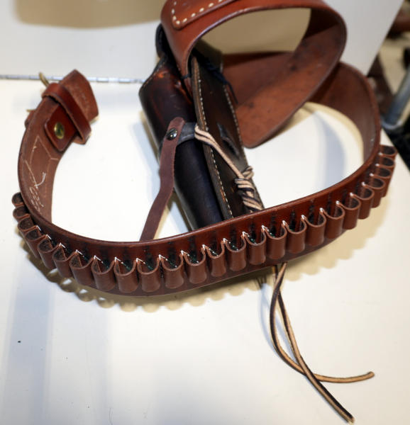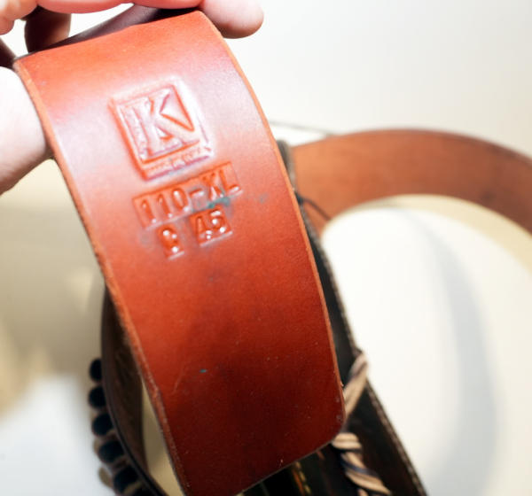 belt is marked 110-XL C45; holster is not marked; holster is darker brown than the belt; used;