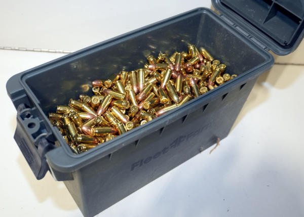 guess would be 700+ rounds total; looks like all new ammo; can is over half full