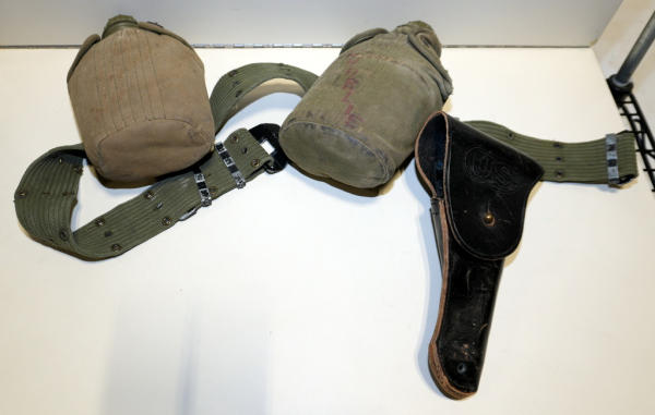 holster has some wear, dated Dec. 1964; canteens are plastic
