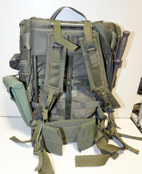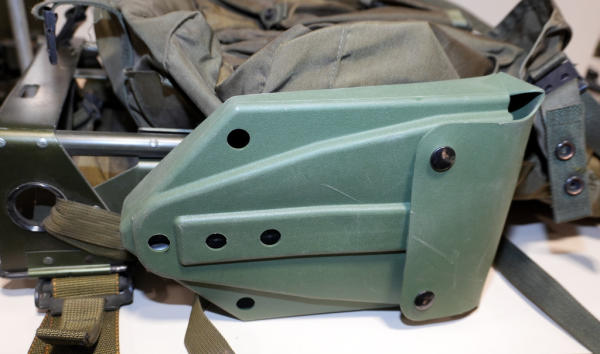 includes a survival knife & folding trench shovel; size medium; nice used original
