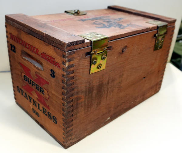 modern made; very nice logo & stenciling; 16"x10"x10"; does have some stains