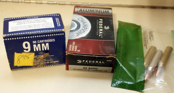 45ACP - 17 rounds; 9mm - 41 rounds; .25-06-3 rounds; sell for one money