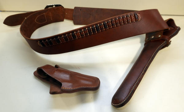 check pics to see size of holster & belt; includes a Bianchi #58 fitted holster; sell for one money