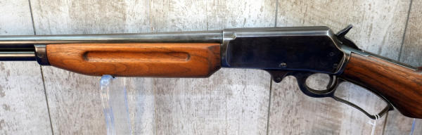 25.5" Rnd. BBL; smooth action; really nice wood stock w/plastic butt plate and thick forearm w/finger grooves; these were mfg. 1929-32 and were a stockholders promotional firearm; bluing has some brown patina; MC; USA; SN#U555; A-356