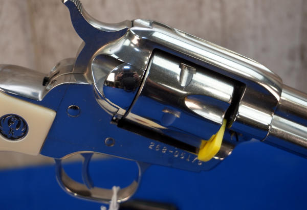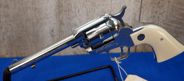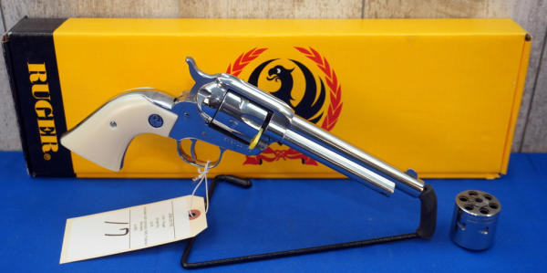 5.5" Barrel w/polished STS finish; includes both LR & Mag cylinders; smooth white plastic grips w/silver eagle logo; mint & unfired; factory box but no end label; USA; SN#268-05176; A-356