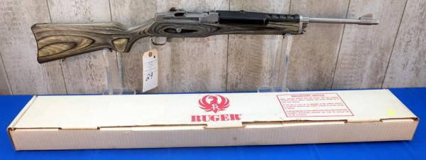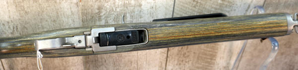 18.5" STS barrel; grey wood grain laminate stock; removable magazine; includes set of STS scope rings; metal butt plate; used but nice and clean; USA; SN#188-19607; A-356