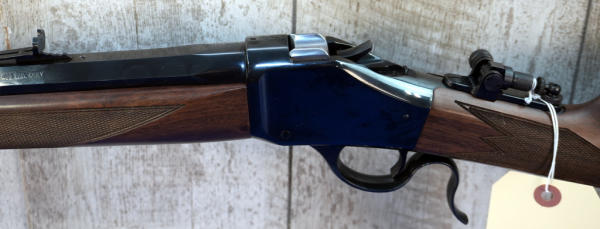 22" Oct. BBL; modern made; mint & unfired w/factory plain white box; rear tang flip up peep sight; smooth action; metal crescent butt plate; wood stock w/nice checkering; nice; Japan; SN#00046MP851; A-360