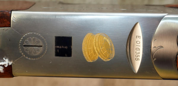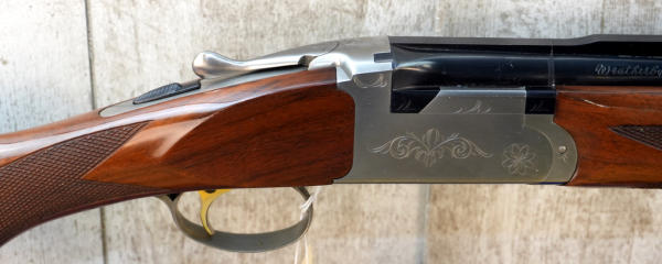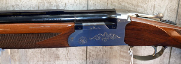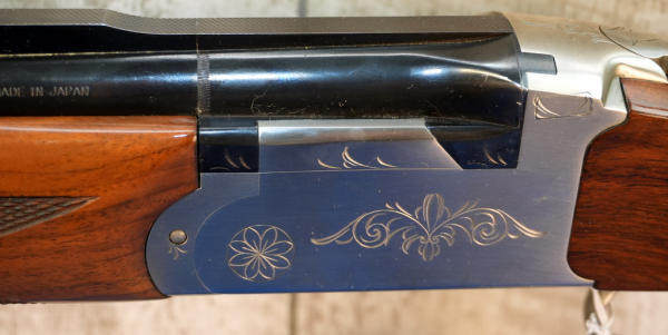 28" VR-BBLs; easy break action; very nice used clean condition; factory box w/additional chokes; 3"; single gold trigger; scroll engraving on STS receiver w/Clay Pigeons on underside; rubber recoil pad; high gloss wood finish w/checkering; Japan; SN#E016355; A-363