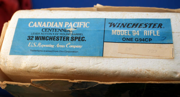 24" BBL; mint & unfired; has original box but missing top portion of styrofoam and cardboard sleeve has wear and damage; saddle ring; engraved receiver; USA; SN#CP727; A-360