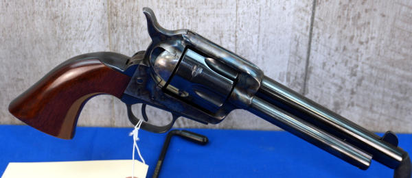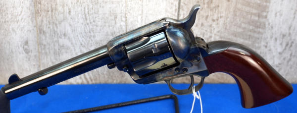 5.5" BBL; case hardened receiver; smooth wood grips; 6-shot fixed cylinder; non-factory hard case; like new condition; Italy; SN#UC8036; A-366