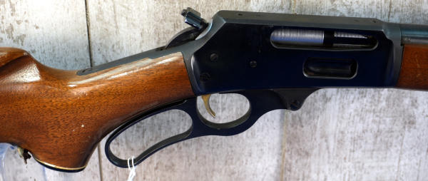 HME; 20" BBL; smooth action; gold trigger; has Marlin 1870-1970 medallion in stock; plastic butt plate; hammer extension; wood has finish loss and field marks; nice bluing; stock on stock; USA; SN#7083064; A-353