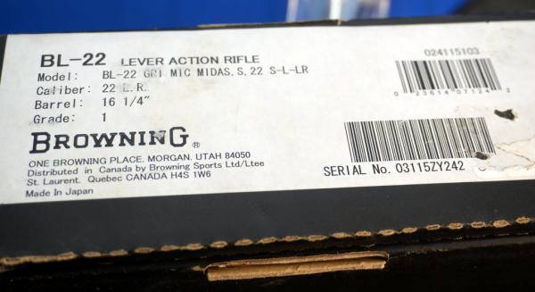 16.25" BBL; mint & unfired w/factory box; high gloss finish; very short stock; short lever action; Japan; SN#03115ZY242; A-356