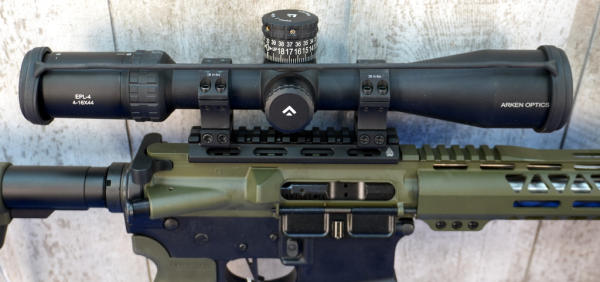 18" STS Barrel w/2" Flash hider; dark military green finish; Arken Optics EPL-4 4-16x44 high end scope; very clean; Vortex scope rings; USA; SN#23035320; A-376