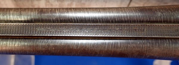 HME; mfg. 1903; 30" BBLs, frame size 2, Twist Steel; wood stock looks nice, was refinished at one time; has a screw behind receiver that was added; two triggers; easy break action; plastic butt plate; overall nice and clean; No Transfer due to twist barrel; USA; SN#117112;