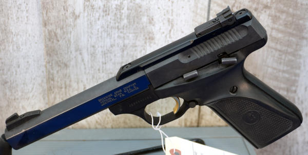 5.5" BBL; gold trigger; hard rubber grips; looks unfired w/factory hard case; two magazines; bright bluing on barrel and parkerized finish on frame; USA; SN#655NW40481; A-360