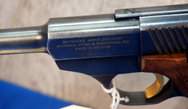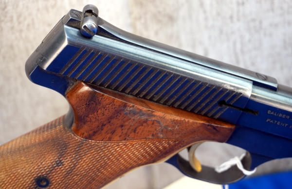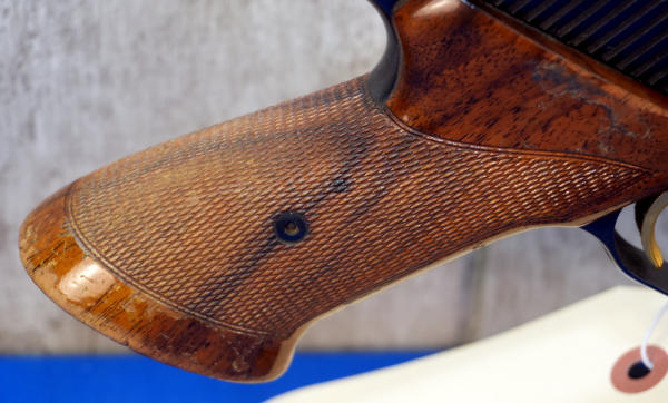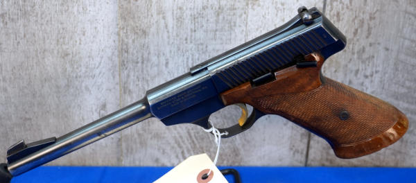 6.75" BBL; wood checkered target grips; gold trigger; has some use wear; Belgium; SN#52937U73; A-356