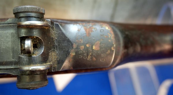 24" BBL date 3/55; trigger mech is H&R and top receiver panel is Winchester; needs a big time cleaning; has some surface rust on some spots; wood has normal wear and dark finish; woven sling; USA; SN#5839740; A-354