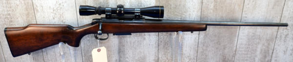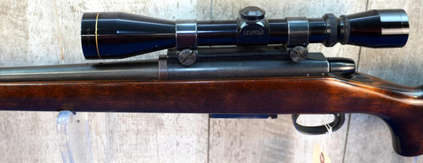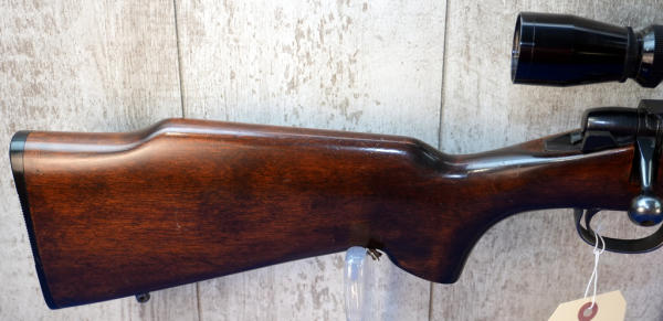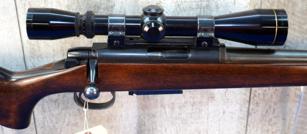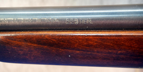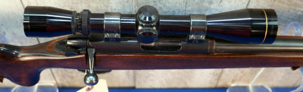 24" BBL; was originally a .222 Rem but has been resleeved to a .223rem; smooth action; decent wood w/only a couple small use marks; plastic butt plate; Leupold Vari-X IIc 3x9 scope; removable magazine; USA; SN#A6102317; A-370