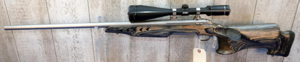 26.5" STS Varmint Barrel; smooth action; NO MAGAZINE; gray wood grain laminate thumbhole stock w/pistol grip; rubber recoil pad; Burris 6.5x-20x Fullfield scope; very nice and clean and great set-up!; Japan; SN#10005ZZ354; A-360