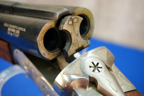 26.5" BBLs; easy break action; single trigger w/barrel select on the trigger; rubber recoil pad; looks mint & unfired w/factory soft case; stainless receiver w/scroll engraving; 2.75"; L-MC, R-CC; Russia; SN#0440275B; A-369
