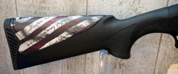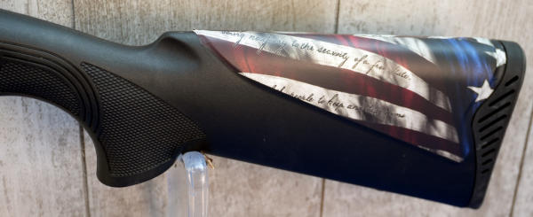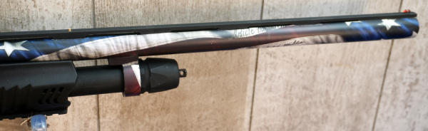 25.5" VR-BBL; smooth action; mint & unfired; factory box; hy-vis front sight; rubber recoil pad; has USA American Flag graphics on barrel & stock; graphics are a decal; 2.75" & 3"; screw-in chokes; SN#21E-11809; A-376