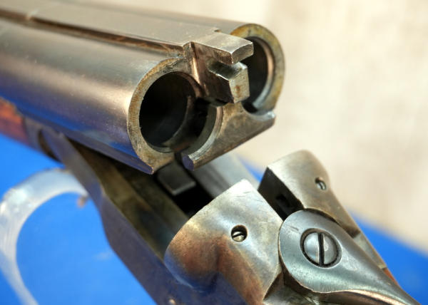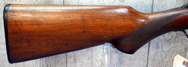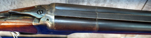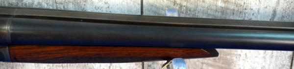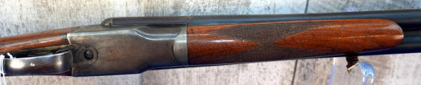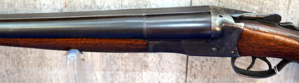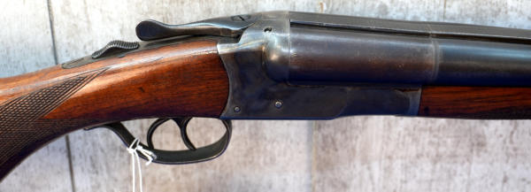 28" BBLs; easy break action; wood is solid w/use marks; plastic butt plate; two triggers; case hardened receiver; L-FC, R-IM; USA; SN#G2159