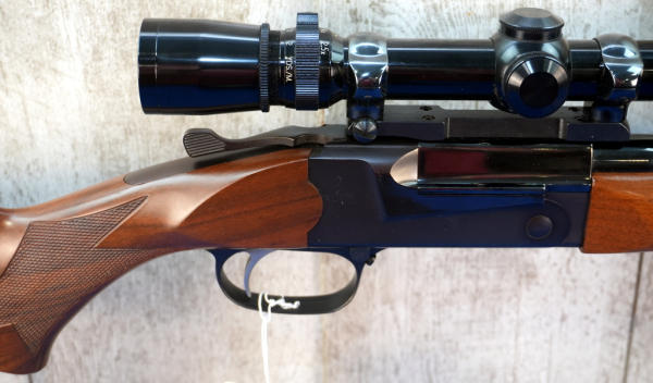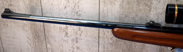 23" BBL; easy break action; very bring bluing on barrel; nice wood; rubber butt pad; Leupold Vari-X III 2.5x8 scope; very clean used condition; USA; SN#11281; A-370