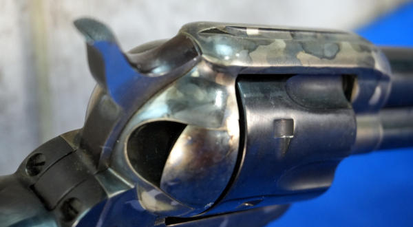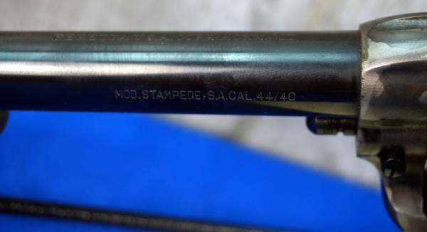 4.75" BBL; case hardened receiver; black plastic checkered grips; very clean like new condition; 6-shot fixed cylinder; Italy; SN#B00728; A-354