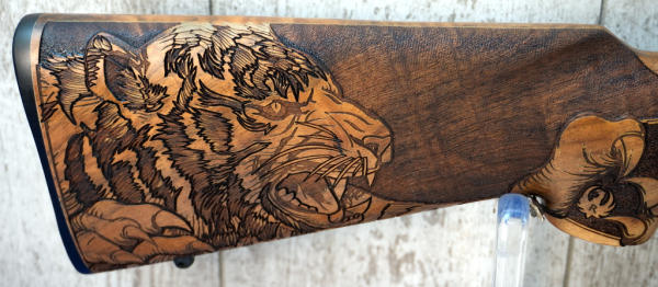 18.5" BBL; mint & unfired; Talo Ed. Tiger engraved wood stock; removable magazine; factory box; USA; SN#0006-36383; A-356