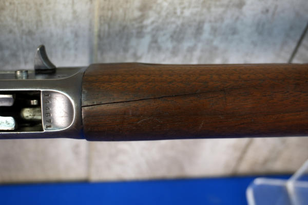 28" Solid-Rib BBL; action is gummed up; wood stock show some use wear; plastic butt plate; bluing is starting to thin; forearm has some cracks on bottom side; MC; USA; SN#144671; A-360