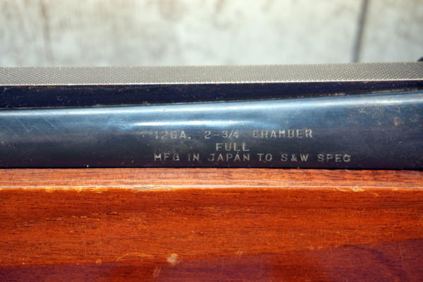 29.5" VR-BBL; really lightweight; plastic butt plate; nice bluing w/scroll engraving on receiver; finish on wood has some cracking; 2.75"; FC; Japan; SN#FB19303; A-360