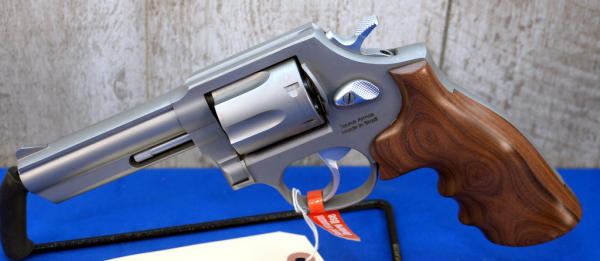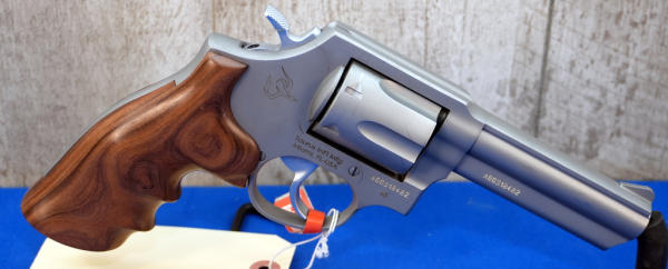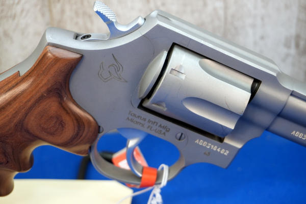 4" STS Barrel; wood finger groove grips; 6-shot swing out cylinder; clean but does have a few scratches to the finish; non-factory hard case; Brazil; SN#ABB318482; A-366