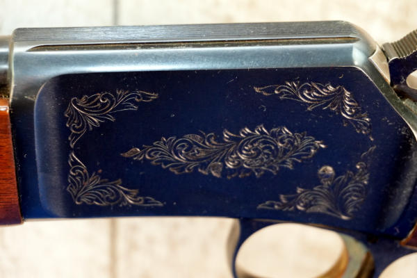 20" BBL; smooth short action; gold trigger; factory scroll engraving on receiver; like new condition w/high gloss finish; plastic butt plate; Japan; SN#03941RN226; A-369