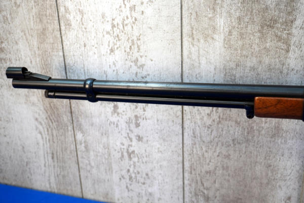 22" BBL; smooth action; could use a cleaning; used but nice shape; hammer extension; front hooded sight needs to be re-adjusted; rubber butt pad; USA; SN#F747974; A-360