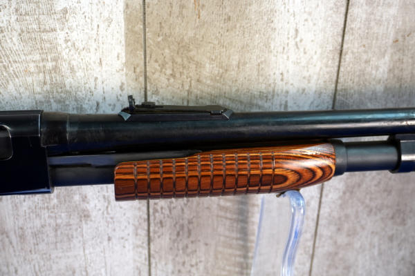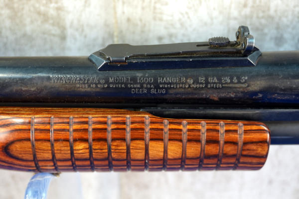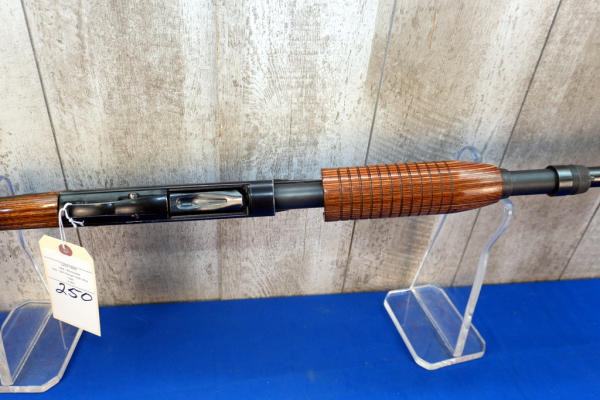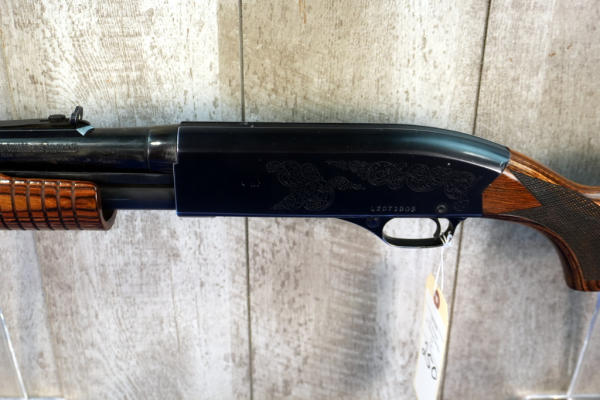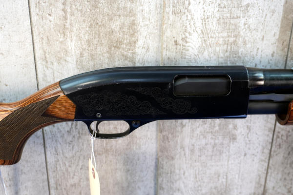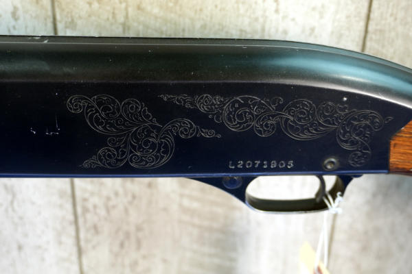22" Slug BBL; smooth action; laminate wood grain stock; enhanced engraved receiver; has some spotting on the barrel; rubber recoil pad; nice stock; 2.75" & 3"; USA; SN#L2071905; A-360
