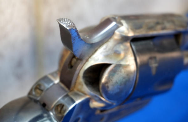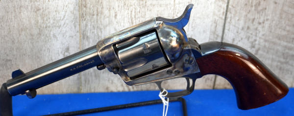 4.75" BBL; case hardened receiver; smooth wood grips; has some spotting on the hammer; grips have a few dings on the bottom; 6-shot fixed cylinder; Italy; SN#127274; A-354
