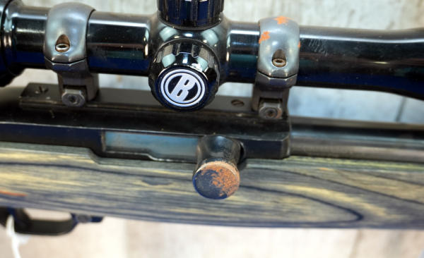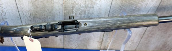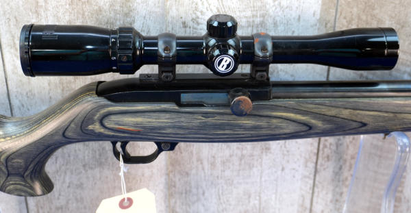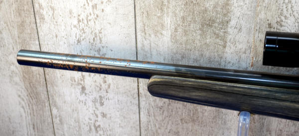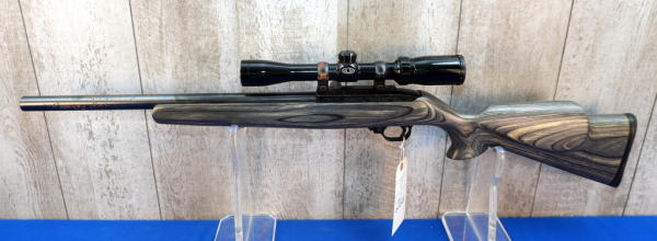 18" E.R. Shaw Varmint BBL; wood grain laminate stock; NO magazine; has some spotting on the barrel & rust on scope rings and receiver knob; rubber butt pad; Bushnell 3-9x32 scope; used; USA: SN#123-44445; A-360