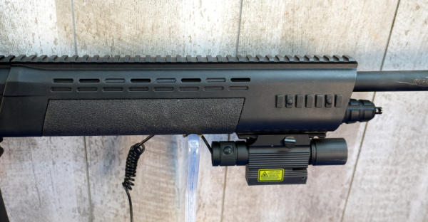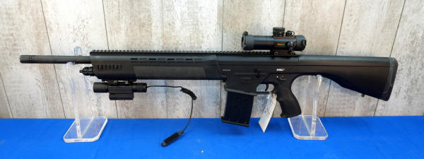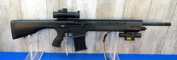 20" BBL w/2" flash hider; black synthetic body w/rubber recoil pad; full length picatinny rail; TruGlo sight; iProtec RM400LSG Light & laser sight; laser works, believe the battery is dead on the light; one magazine; 3" w/Screw-in choke; clean like new condition; Turkey; SN#KRX001087; A-354